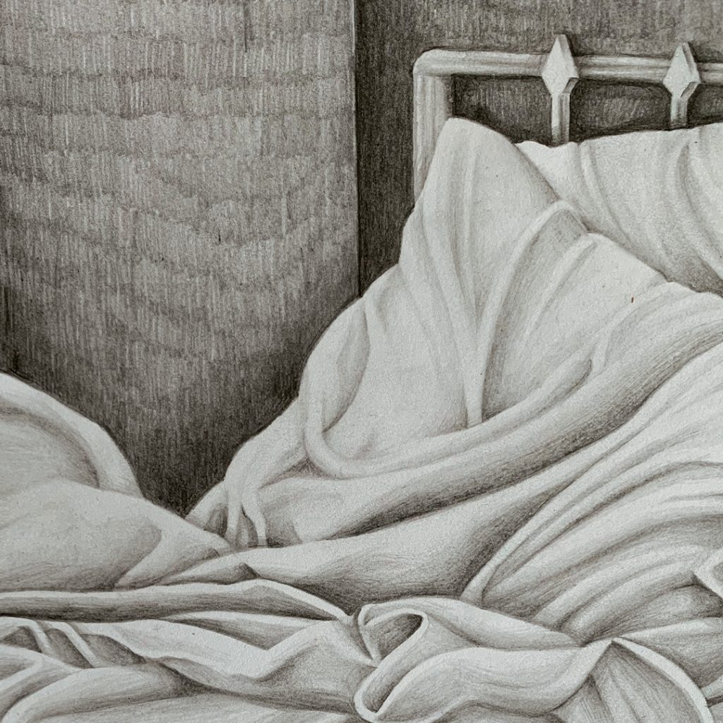 Illustration crayon graphite – 30 x 30 cm Colorisation digitale.